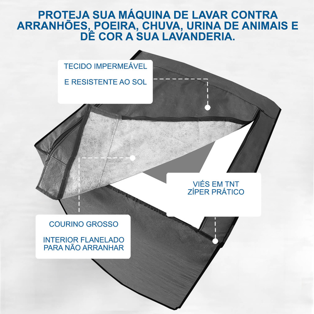 A capa é desenvolvida para se ajustar aos principais modelos de máquinas de cozinha. Recomendamos verificar as medidas de sua máquina (comprimento x largura x altura) com as dimensões do produto. O zíper permite um ajuste flexível mesmo com pequenas variações.