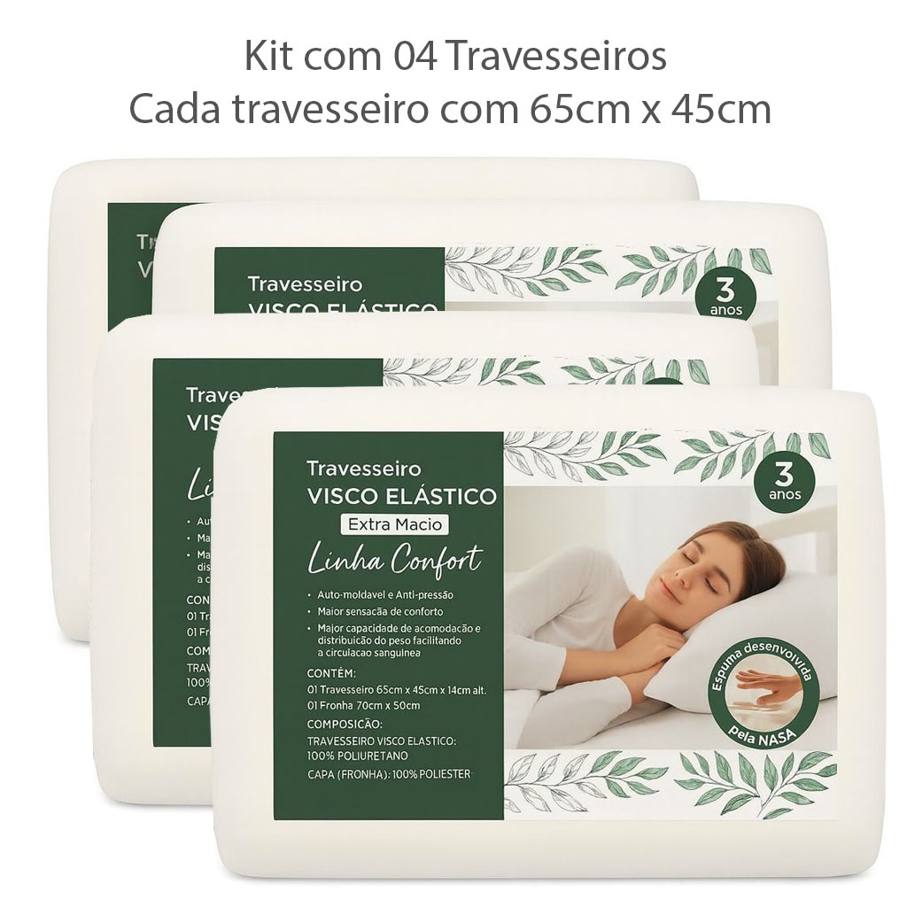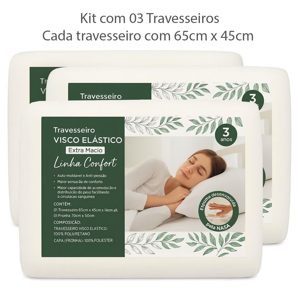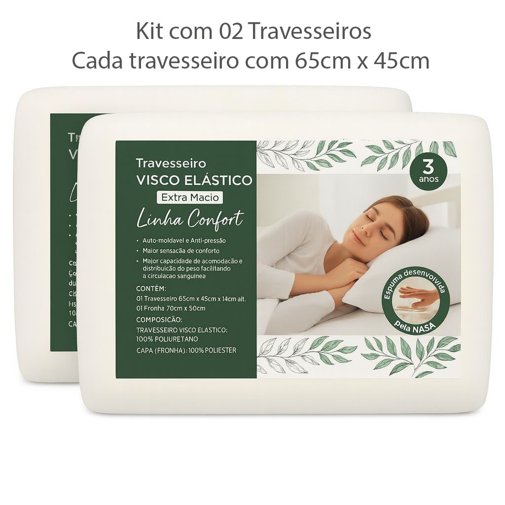 - 01 Travesseiro Viscoelástico Nasa 65x45x14cm.