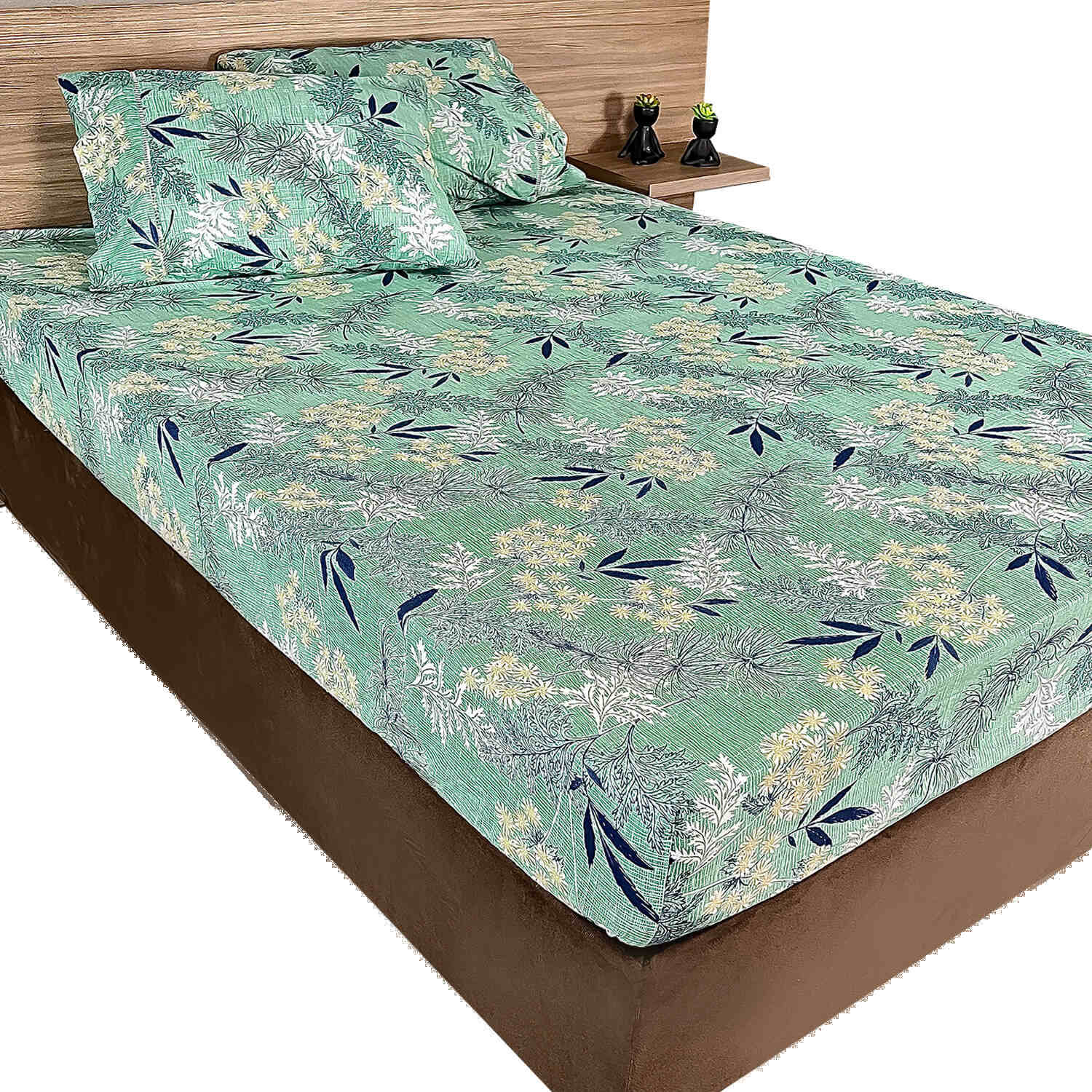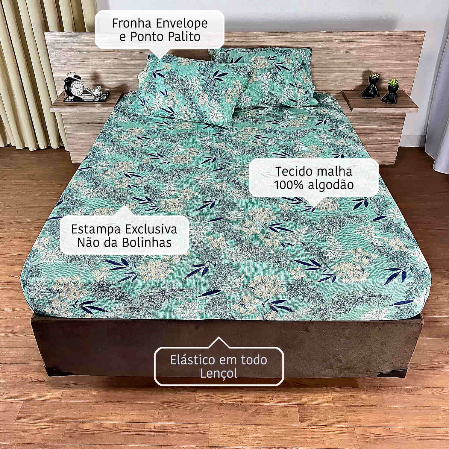 JOGO DE LENÇOL CASAL MALHA FIO 24 3 PÇS RAMADO ESTAMPADO