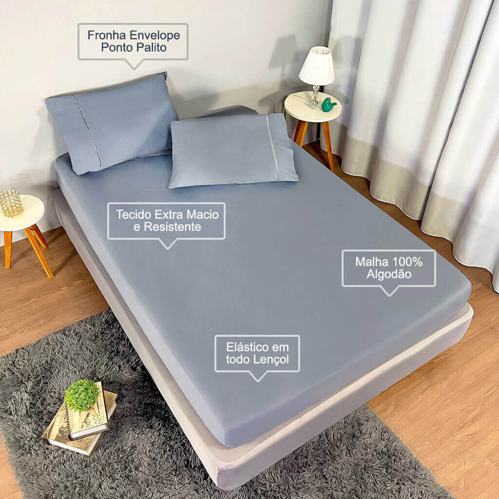 JOGO DE LENÇOL SOLTEIRO KING MALHA FIO 30 2 PÇS LISO
