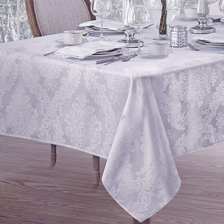 Toalha de Mesa Retangular Jacquard 8 Cadeiras 1,50 X 2,50M - Branco