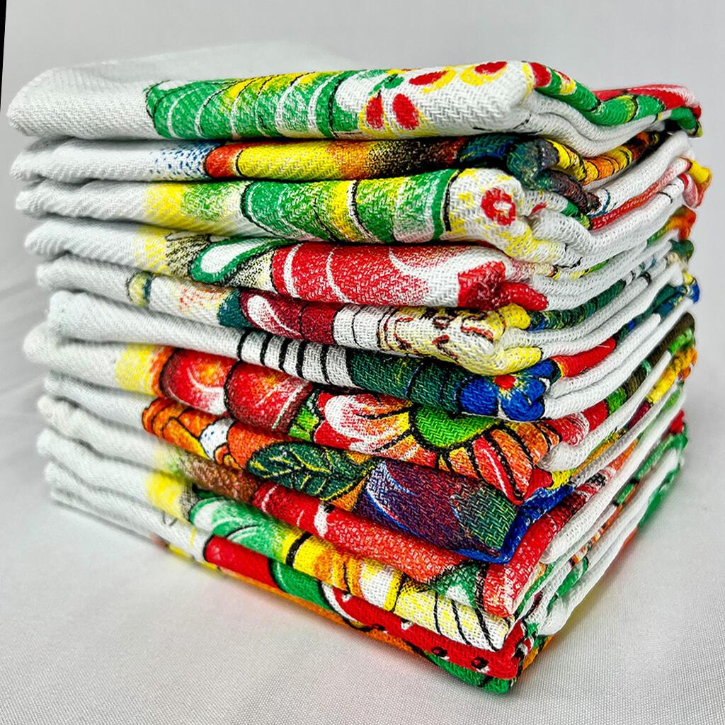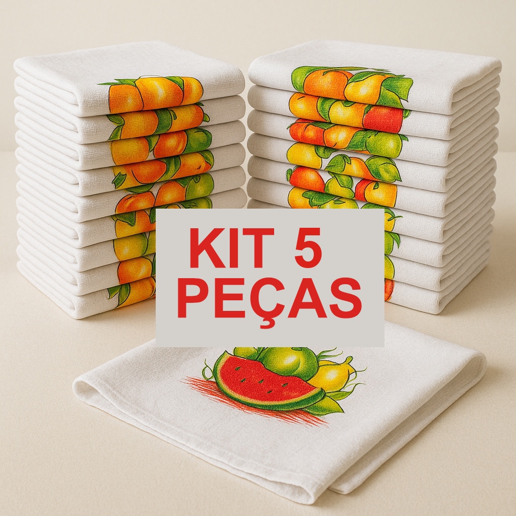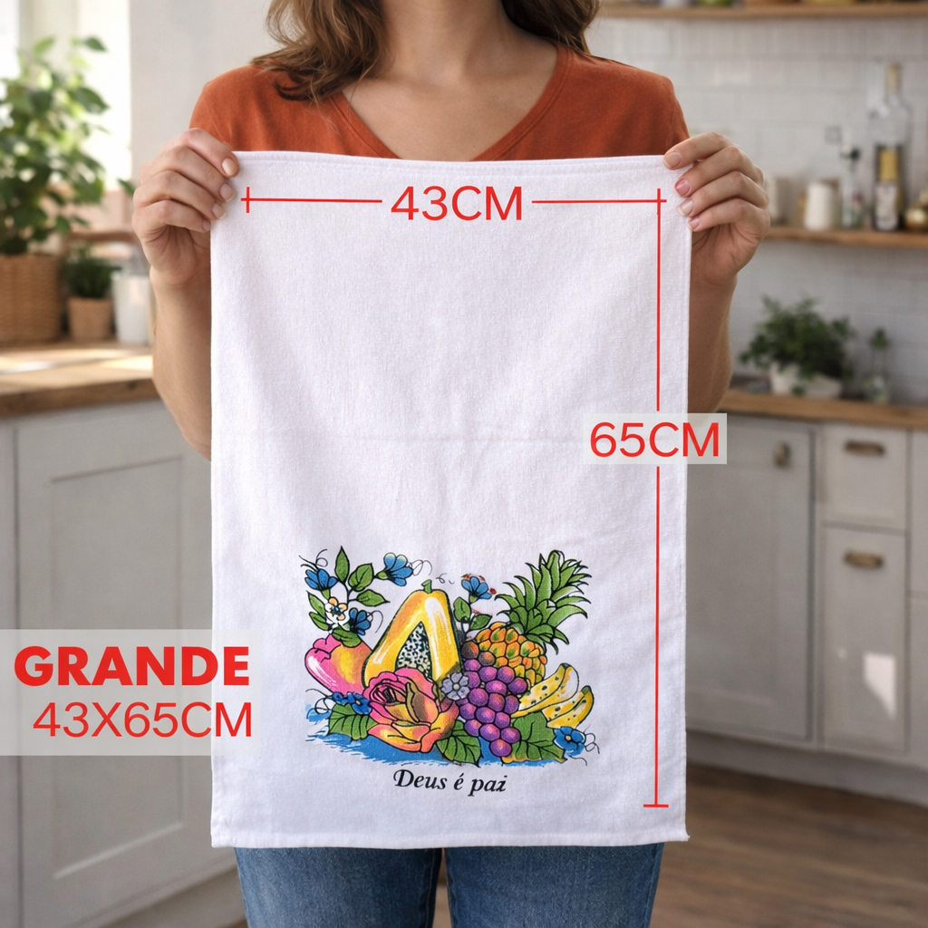 100% algodão para máxima absorção e durabilidade. Ideal para secar louças, cobrir alimentos e auxiliar no preparo de receitas.