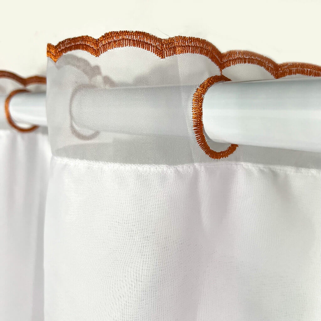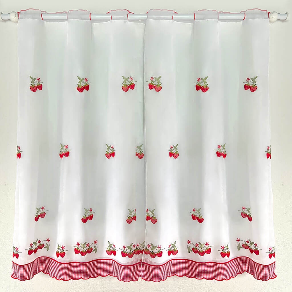 A cortina é confeccionada com tecidos premium selecionados especialmente para durabilidade e beleza. O material oferece caimento perfeito e é prático para o dia a dia da cozinha, resistindo bem ao uso frequente e facilitando a limpeza.