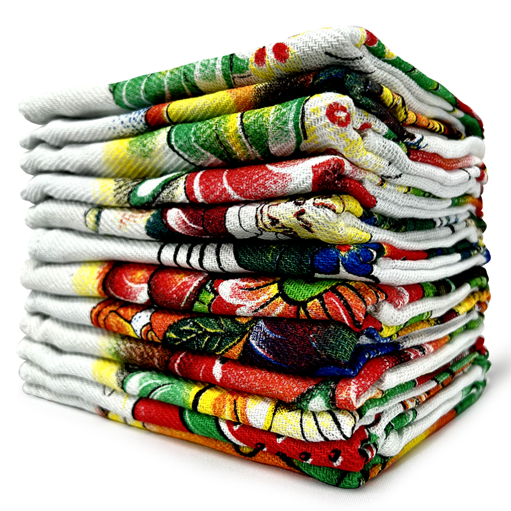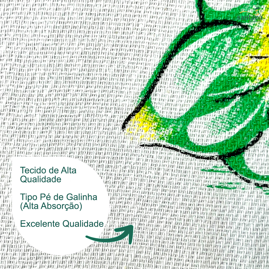 100% algodão para máxima absorção e durabilidade. Ideal para secar louças, cobrir alimentos e auxiliar no preparo de receitas.