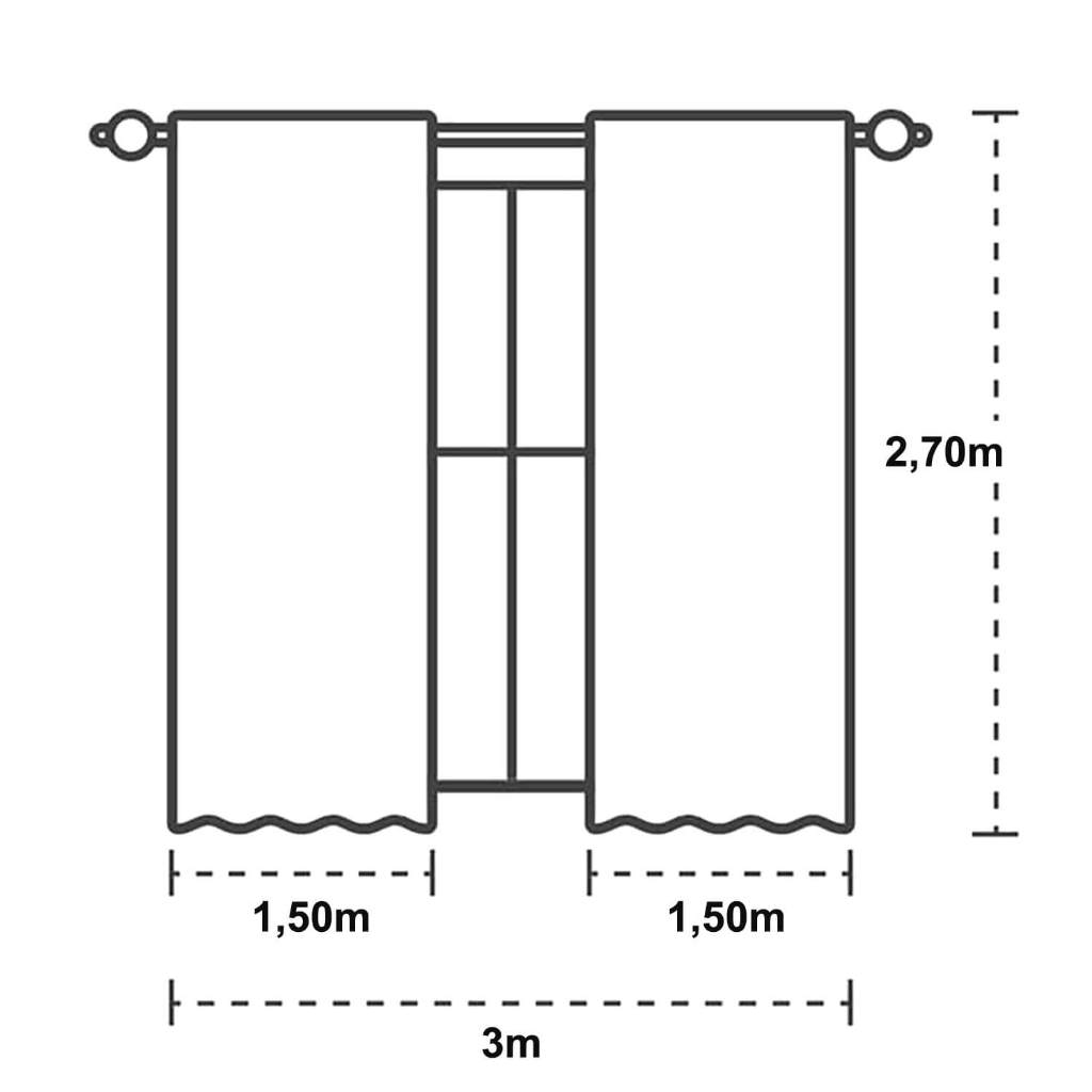 A Cortina YASMIN 3M vem com 3 metros de largura, ideal para janelas padrão e ambientes de tamanho médio a grande. Esse tamanho é versátil e permite bom caimento do tecido. Se sua janela for menor, a cortina pode ser pendurada com pregas generosas para um efeito mais elegante. Para necessidades diferentes, consulte nossa equipe sobre outras opções de medidas disponíveis.