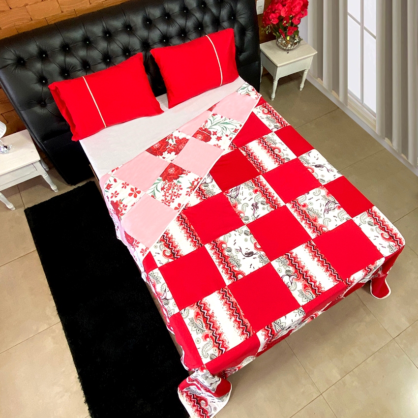 Colcha de Retalhos Santana Casal Dupla Face Artesanal Malha 100% Algodão