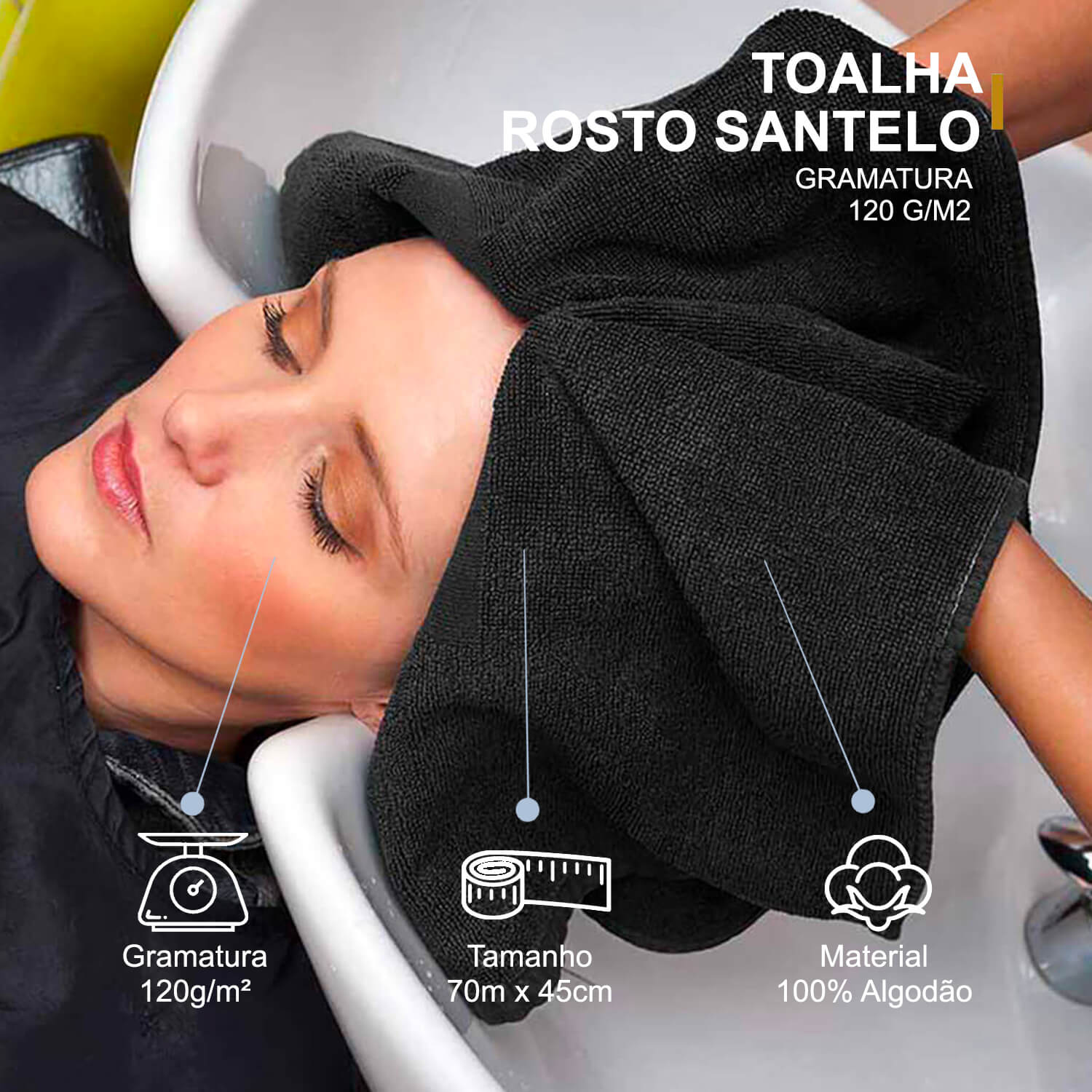 - 1 Toalha de Rosto para Salão Preta Santelo – 70x45cm – 100% Algodão