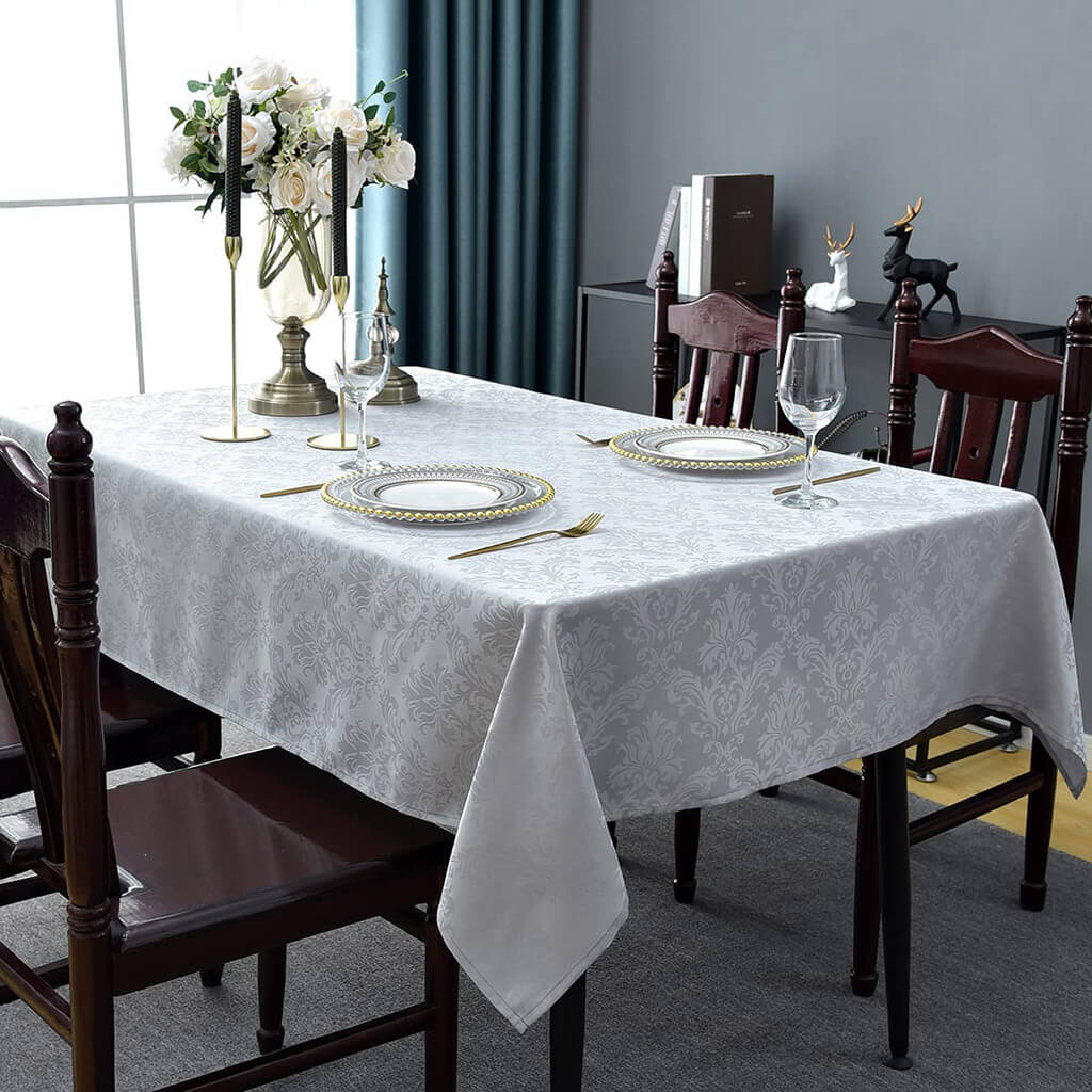 Toalha de Mesa 6 Lugares Tecido Jacquard Retangular 1,50x2m Cinza