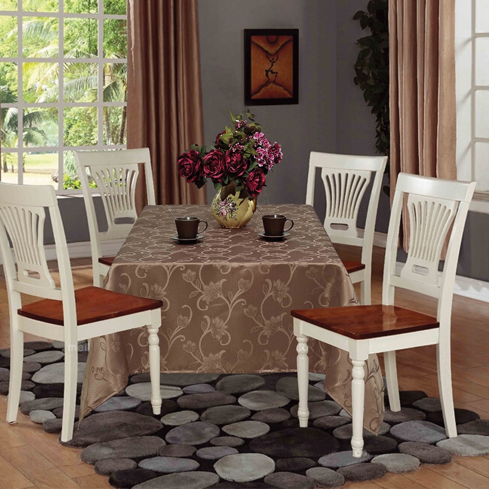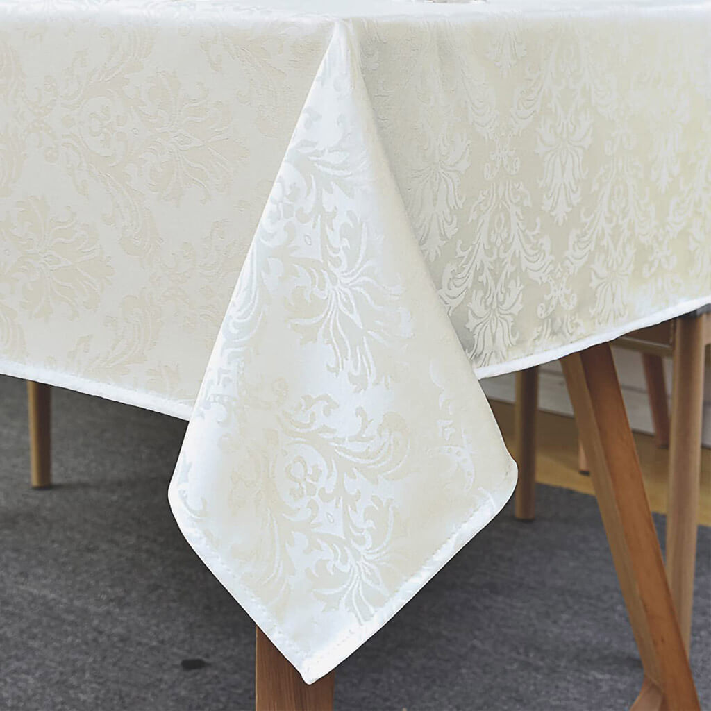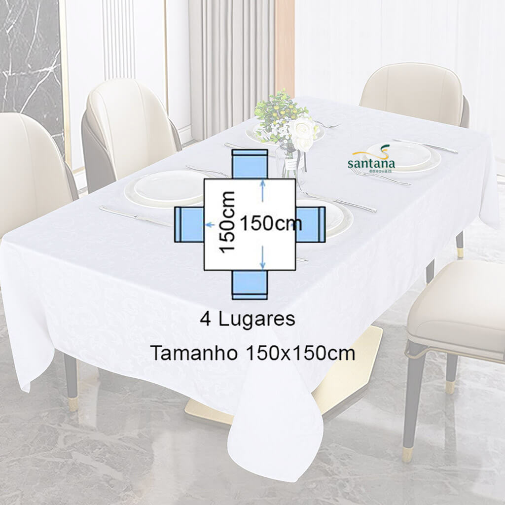 Toalha de Mesa 4 Lugares Tecido Jacquard Quadrado 1,50x1,50m Marfim