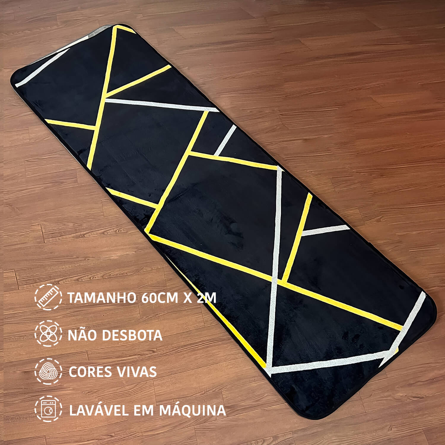 Um tapete bonito traz aconchego e personalidade para qualquer cômodo. Este modelo oferece conforto para os pés e base antiderrapante para segurança.