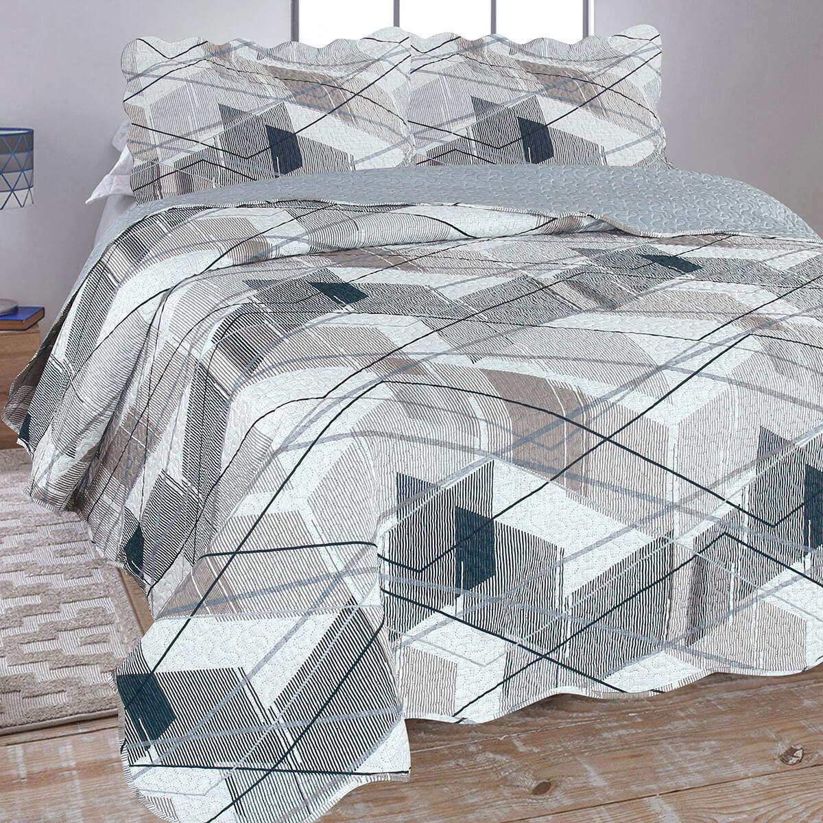 Kit Cobre Leito Colcha King Boutis Estampado 3 Peças Dupla Face Porta Travesseiro Nomadi
