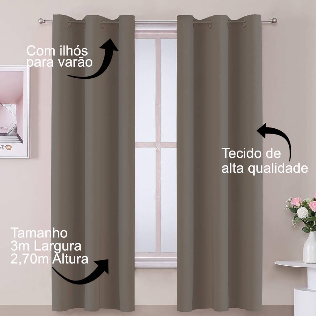 - 1 Cortina Marrom Paris, 3m de largura x 2,70m de altura, pronta para varão.